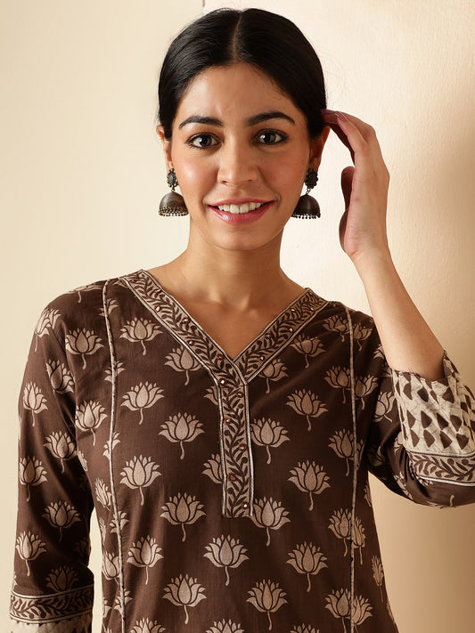 Brown Pure Cotton Straight kurta